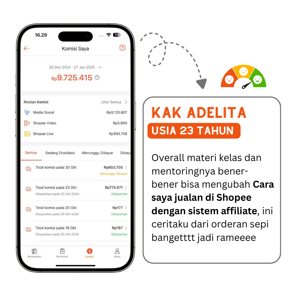 • Strategi dari Awal Sampai Cuan: Kami ajarkan semua, mulai dari cara mendaftar, memilih produk, sampai cara memaksimalkan komisi. Semua materinya simple dan mudah dipraktikkan.